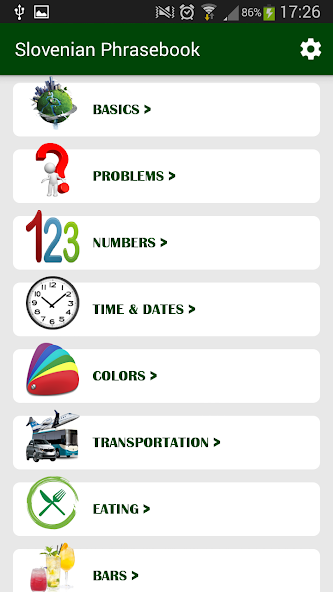 当您去斯洛文尼亚或其他任何斯洛文尼亚国家的国家时, Slovenian phrasebook的非常有用!该短语书包含来自不同类别的句子,例如: